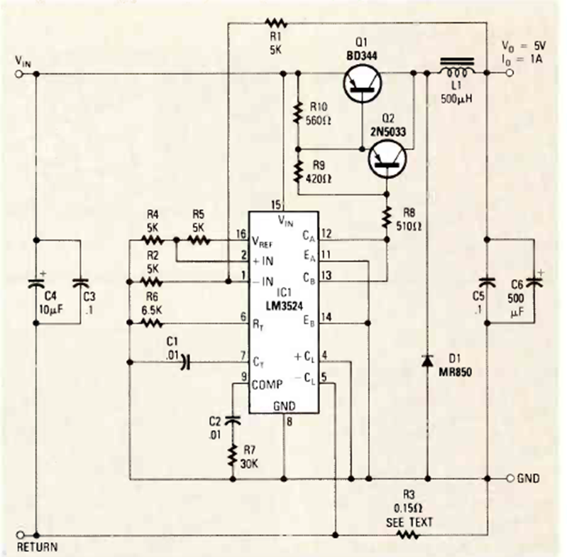 Este circuito se obtuvo de la revista Radio Electronics en diciembre de 1985. El circuito utiliza componentes de la época, como el transistor de potencia, que debe estar equipado con un disipador de calor.