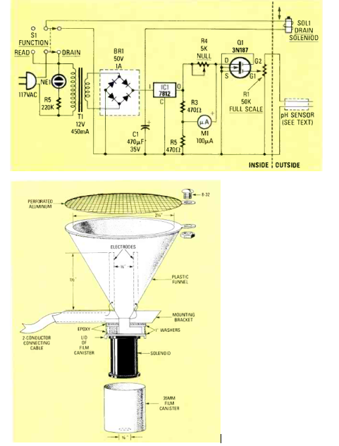 Escrito en un artículo de la revista Radio Electronics de abril de 1987, este circuito activa una alarma a través de un relé. Los detalles del sensor se dan en el artículo.
