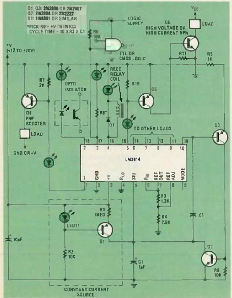 En la figura tenemos la forma de controlar el conteo de un 4017 con un interruptor de inicio y...