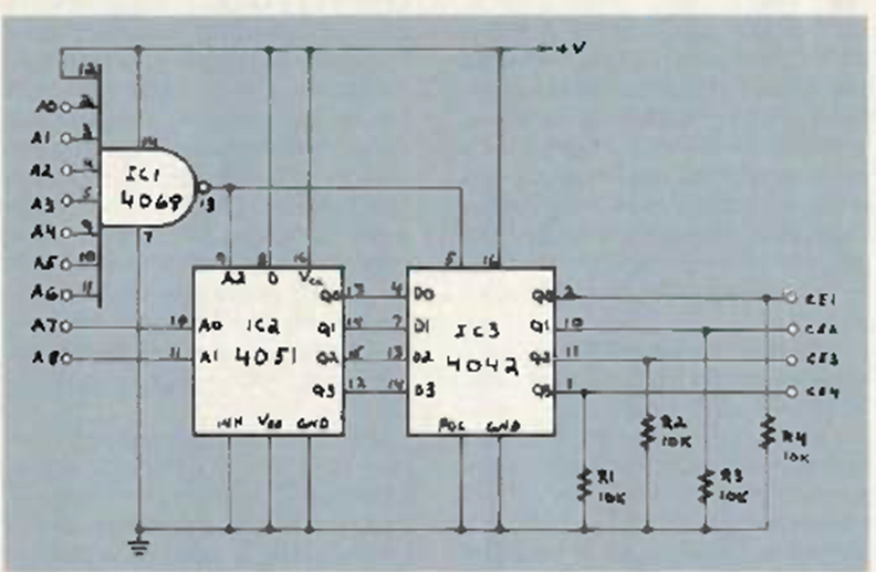 Este banco de claves se puede programar de varias formas para experimentos lógicos. El circuito es de la revista Radio Electronics de agosto de 1986.