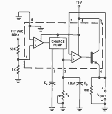 También apto para utilizar el LM291, este circuito fue encontrado en una revista de Radio Electronics de octubre de 1977. El instrumento conectado a la salida puede ser un voltímetro común.