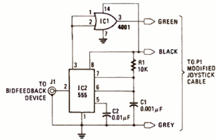 Tenemos muchas versiones de biofeedback con el 555 en este sitio. Este es otro de ellos. Lo encontramos en la revista Radio Radio Electronics de octubre de 1986. La fuente de alimentación debe estar aislada.