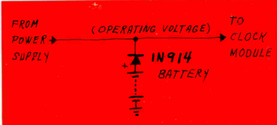 En la figura tenemos una forma sencilla de tener suministro de energía de emergencia para un circuito de 9 V alimentado por una fuente. Si falla la fuente, entra en acción la batería de 9 V. Se puede realizar con baterías de otras tensiones.