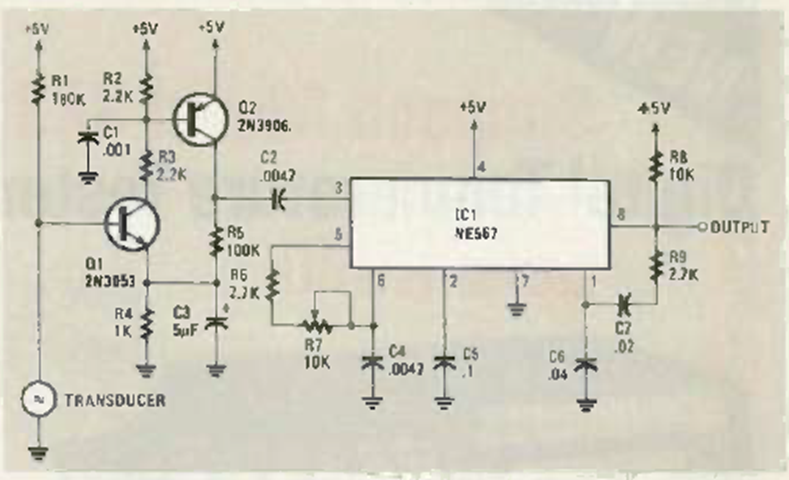 En la figura tenemos la forma de recibir señales ultrasónicas de una sola frecuencia utilizando un PLL 567. El circuito es de una Radio Electrónica de noviembre de 1985.