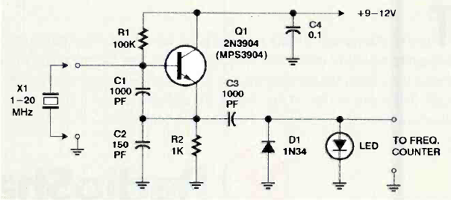 Este circuito se puede utilizar para probar cristales de 1 a 20 MHz e incluso tiene una salida para medir su frecuencia. Lo encontramos en la revista Electronics Now de noviembre de 1998.