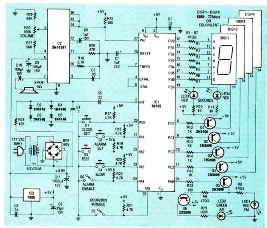 Este circuito, que puede servir de referencia para restauraciones, fue encontrado en la edición de octubre de 1989 de la revista Radio Electronics. El circuito utiliza una pantalla de 5 dígitos y un circuito integrado dedicado.