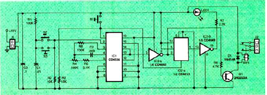 Este circuito fue encontrado en un artículo de la revista Electronics Now de junio de 1998. El sensor consiste en una alarma de péndulo en la que un objeto metálico puede vibrar con el terremoto al tocar un aro que lo rodea.