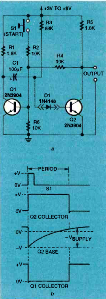 Este circuito se encontró en la edición de enero de 1994 de la revista Electronics Now. Los transistores son de uso general. La forma de la señal generada se muestra junto al diagrama.