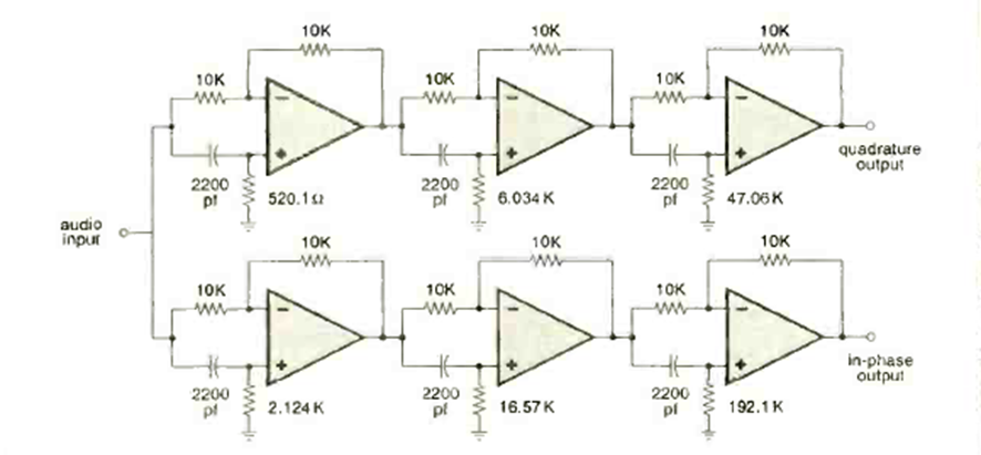 Este circuito fue encontrado en la edición de abril de 1998 de la revista Electronics Now. El circuito utiliza amplificadores operacionales comunes y utiliza una fuente de alimentación simétrica.