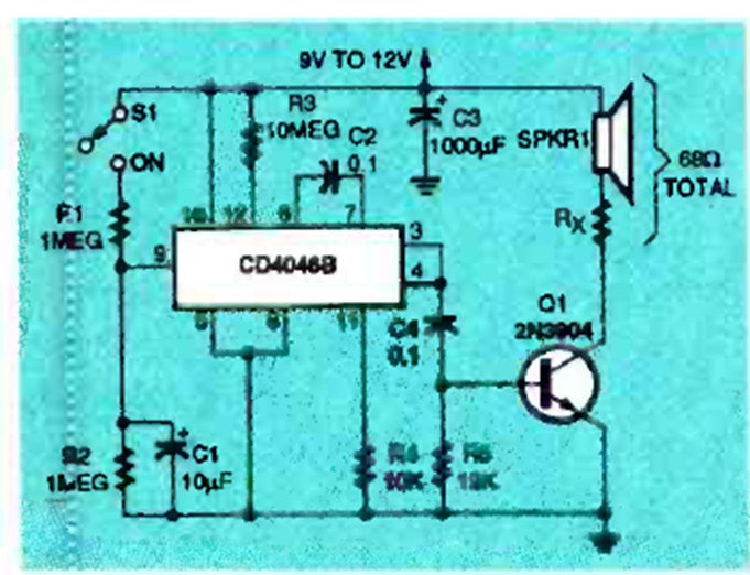 Este circuito con el PLL4046 fue encontrado en la revista Electronics Now de octubre de 1994. El transistor es de baja potencia y el volumen obtenido es pequeño.