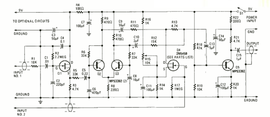 Encontramos este circuito en la edición de 1983 del Electronics Experimenter Handbook. El circuito utiliza componentes que son comunes hoy en día, aunque muchos admiten equivalentes.
