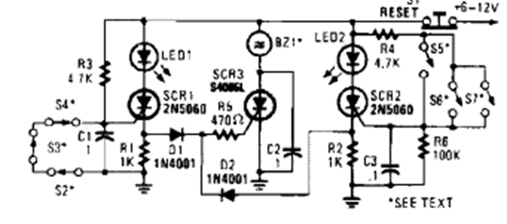 Este circuito se encontró en el volumen 5 de la Enciclopedia de Circuitos Electrónicos de 1995. El circuito se basa en la activación retardada de los rectificadores controlados de silicio (SCR) que controlan una carga de CC.