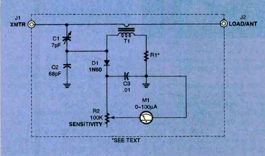 Este medidor de potencia del transmisor se encontró en la edición de marzo de 1999 de la revista Electronics Now. El circuito utiliza un indicador analógico y no requiere fuente de alimentación.