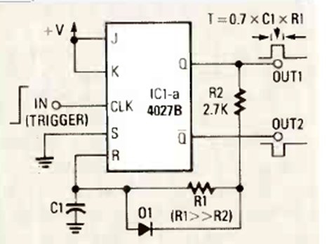 Este circuito fue sugerido en un artículo de la revista Radio Electronics de abril de 1988. El flip-flop es del tipo JK.