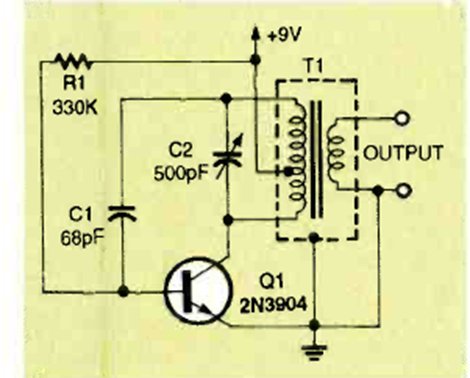 Este circuito se puede utilizar tanto como oscilador de batido como para probar y ajustar receptores AM para la banda de onda media (OM). Lo encontramos en la edición de mayo de 1994 de la revista Electronics Now.