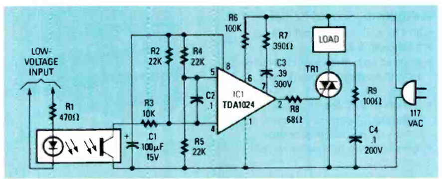 Encontramos este circuito en la revista Radio Electronics de octubre de 1987. El circuito utiliza un componente integrado de la época. El SCR debe tener capacidad de carga y estar montado sobre un disipador de calor.