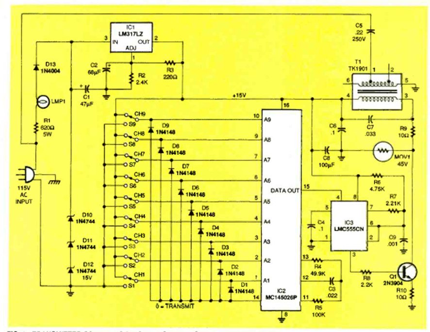 Este circuito salió en una revista de electrónica de junio de 1995. Utiliza un codificador de 10 canales de la época.
