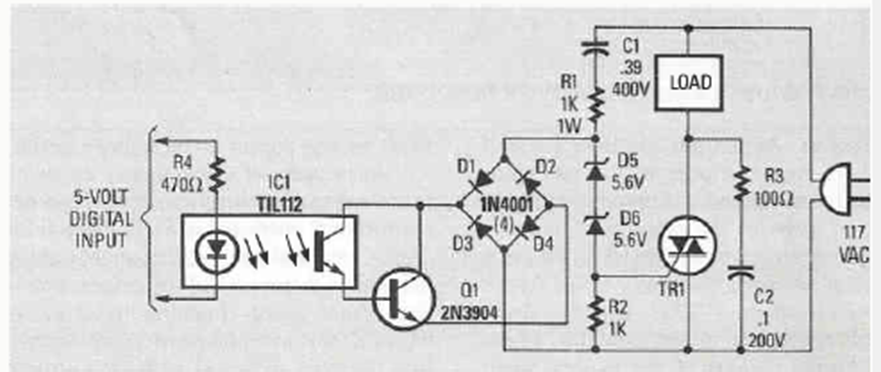 Este escudo de disparo de onda completa se encontró en la revista Radio Electronics Experimenter de 1989. El Triac debe adaptarse a la carga que se va a controlar.