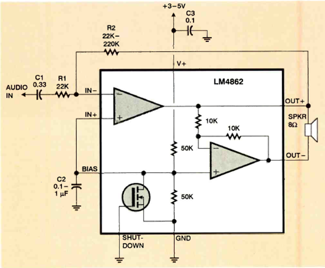 Encontramos este pequeño amplificador de audio en la revista Electronics Now de noviembre de 1999. El circuito integrado utilizado no es muy común hoy en día.