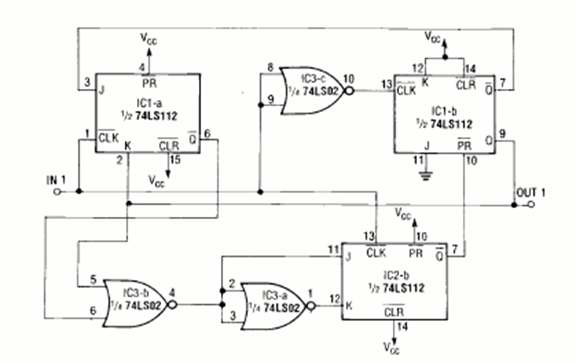 Esta es una versión mejorada del circuito anterior que también se encuentra en la revista Radio Electronics de diciembre de 1990. El ciclo de trabajo también es del 50%.
