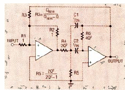 Este filtro de un hercio y medio con alta selectividad fue encontrado en la revista Radio Electronics de diciembre de 1990. La fuente debe ser simétrica. Los capacitores se pueden cambiar para otras frecuencias.