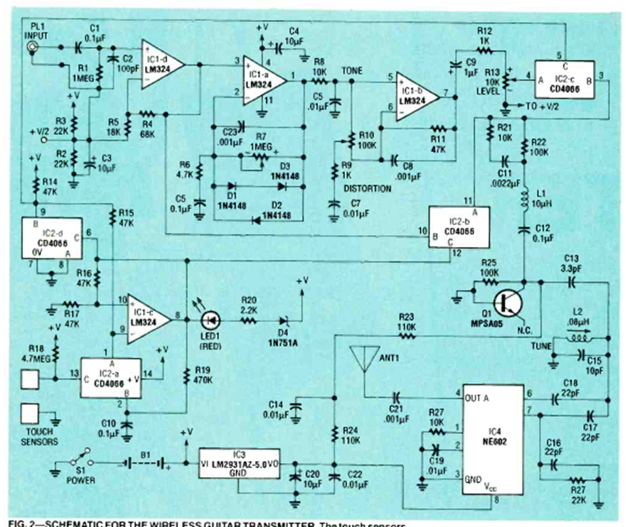 Este sofisticado transmisor se descubrió en la edición de junio de 1993 de la revista Electronics Now. Consistía en un circuito integrado específico de la época.