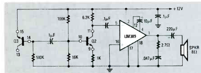 Obtenido del manual de circuitos integrados de Siemens de 1976, este amplificador de audio tiene...