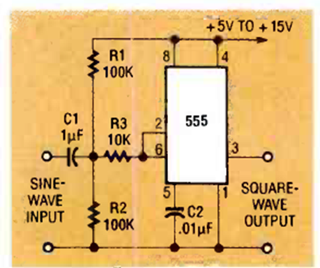 Encontramos este circuito en la revista Radio Electronics de noviembre de 1992. Funciona tanto con señales de entrada sinusoidales como con una señal de salida rectangular.