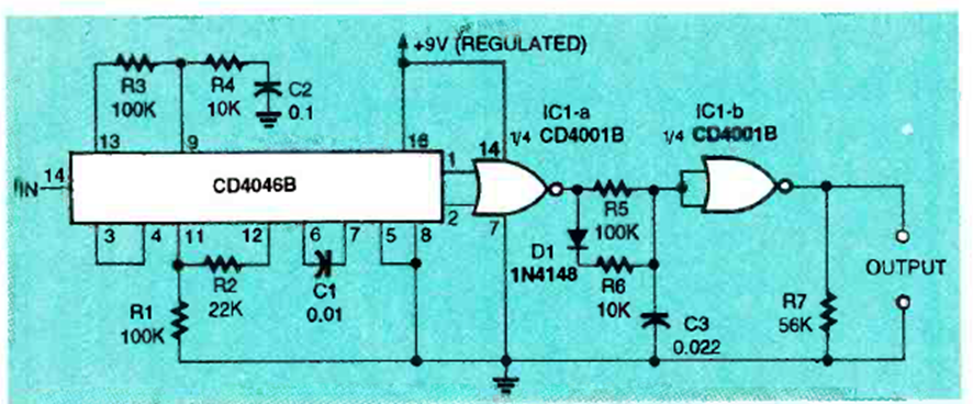 Encontramos este circuito en la edición de octubre de 1994 de la revista Electronics Now. El circuito utiliza un PLL 4046 ahora poco común y las puertas de un CMOS 4001.