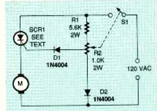 Este circuito triac se obtuvo de la revista Electronics Now de agosto de 1995. El triac debe ser acorde a la carga y debe estar equipado con un disipador de calor.