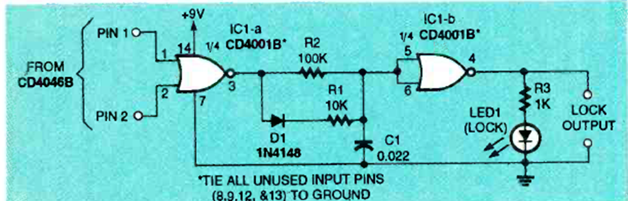 Este circuito se utiliza para detectar las señales PLL del IC 4046. El circuito es de un Electronics Now de octubre de 1994. La indicación se realiza mediante LEDs.