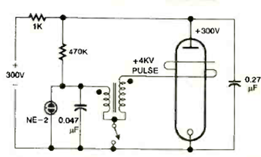 Este circuito de lámpara de xenón, también un estroboscopio, fue encontrado en la edición de mayo de 1996 de la revista Electronics Now. El transformador de disparo es de un tipo apropiado para la aplicación.