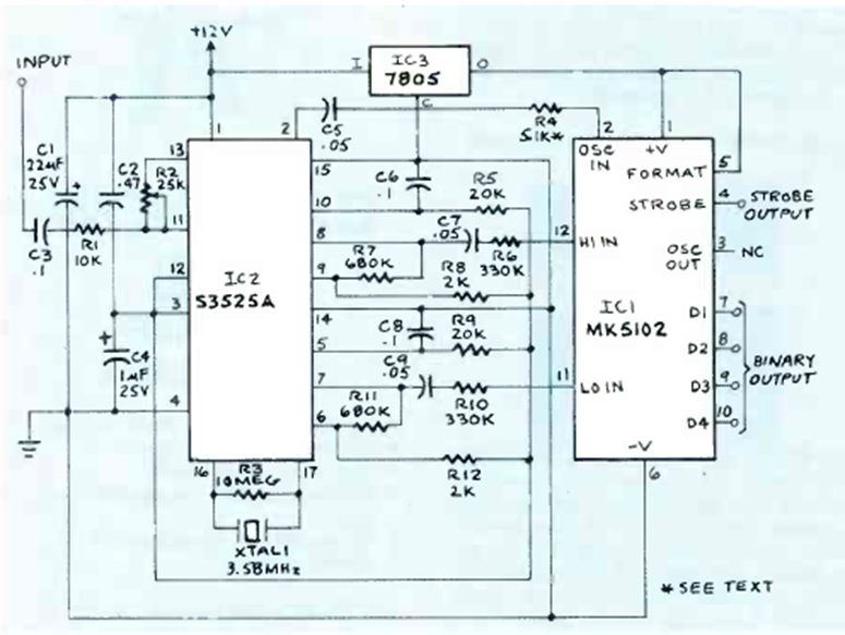 Este circuito fue encontrado en la revista Radio Electronics del año 1987. Los componentes utilizados son circuitos integrados de la época.