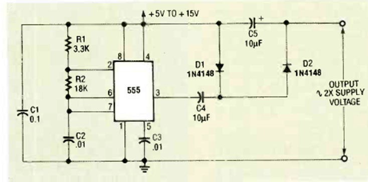 Este circuito, capaz de generar tensiones de hasta 25 V, se descubrió en la edición de diciembre de 1992 de la revista Radio Electronics. La frecuencia del circuito se puede ajustar para una mayor eficiencia y la corriente es de tan solo unos pocos miliamperes.