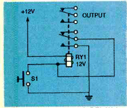 En la figura tenemos la forma de conectar un relé para obtener el efecto de bloqueo. El circuito es de Electronics Now de junio de 1994.