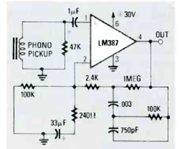 Este preamplificador para cartuchos magnéticos fue encontrado en la edición de febrero de 1990 de la revista Radio Electronics. El circuito en ecualización RIAA,