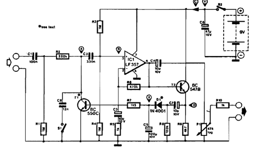 Este circuito se encontró en el número 303 de la revista Elektor de la década de 1990, "Circuitos". El circuito utiliza un sistema operativo equivalente. La fuente no es simétrica.