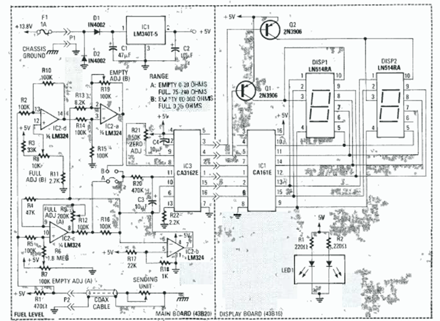 Este circuito de dos dígitos se encontró en el Radio Experimenter Handbook de 1999. Utiliza el par de convertidores A/D CA3161 y CA3162, comunes en la época.