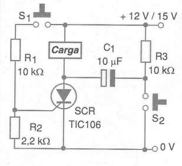 El apagado se hace presionando S2 cuando, la corriente de descarga del condensador cortocircuite el SCR apagándolo.
