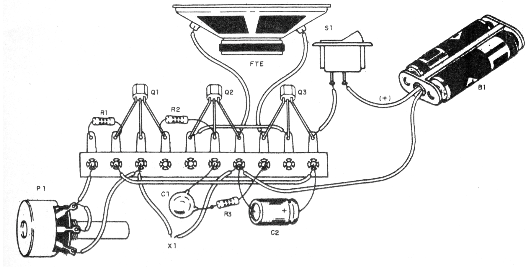 El volumen del sonido generado es razonable dependiendo de la tensión de alimentación. En la figura 1 tenemos el diagrama completo del aparato.