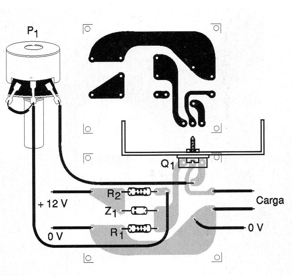 El resistor R2 debe ser preferiblemente de hilo pudiendo ser improvisado con la conexión de 5 resistencias de 0,47 ohms x 0,5 W en paralelo.