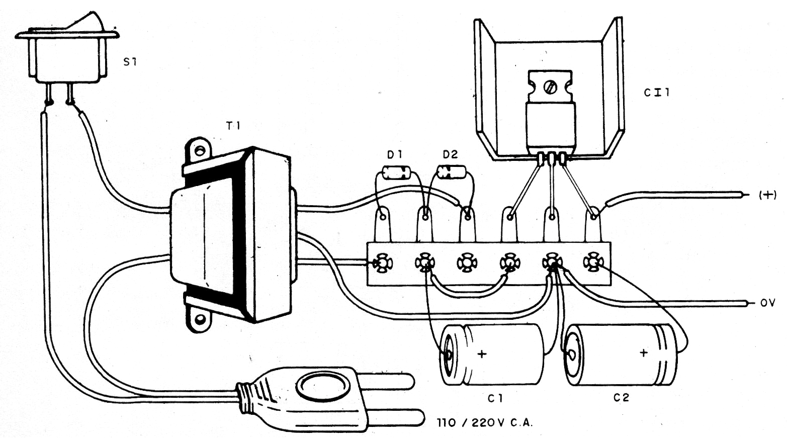 En la figura 1 tenemos el diagrama completo de nuestra fuente que utiliza un circuito integrado regulador de tensión.