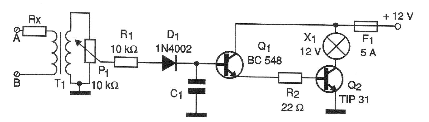 este circuito se puede utilizar en el coche o incluso en el hogar, junto con una fuente de 12 v con al menos 1 a para obtener efectos especiales de luz acompañando el sonido. Con él, una lámpara de 12 V parpadeará en el ritmo de la música reproducida por su equipo de sonido.
