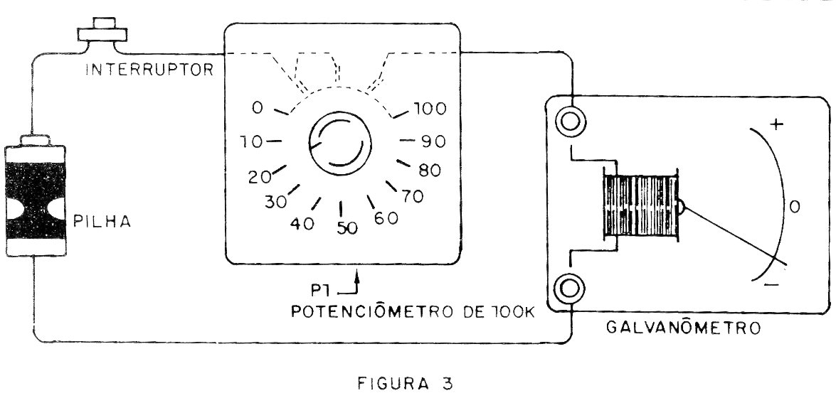 Para ello, montamos el circuito de la figura 3 que consta de una pila, el galvanómetro, un interruptor de presión y un potenciómetro lineal de 47k.