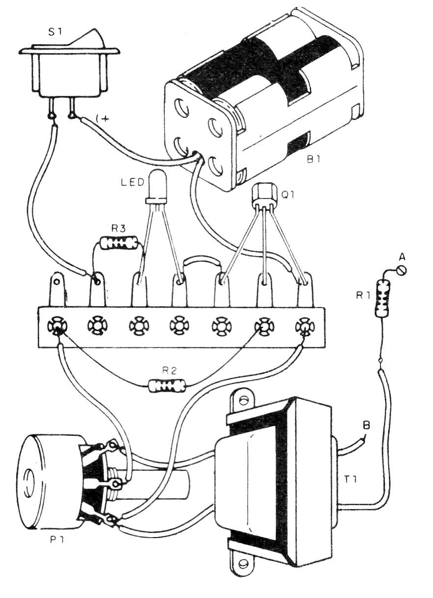 El transformador puede ser un pequeño transformador que se utiliza en la fuente con un primario de 110 V o 220 V y secundario de 5 a 12 V con corriente de 50 a 250 mA. El resistor R1 depende de la potencia del sonido, pudiendo tener valores entre 10 ohms y 100 ohms. Este resistor debe obtenerse experimentalmente.
