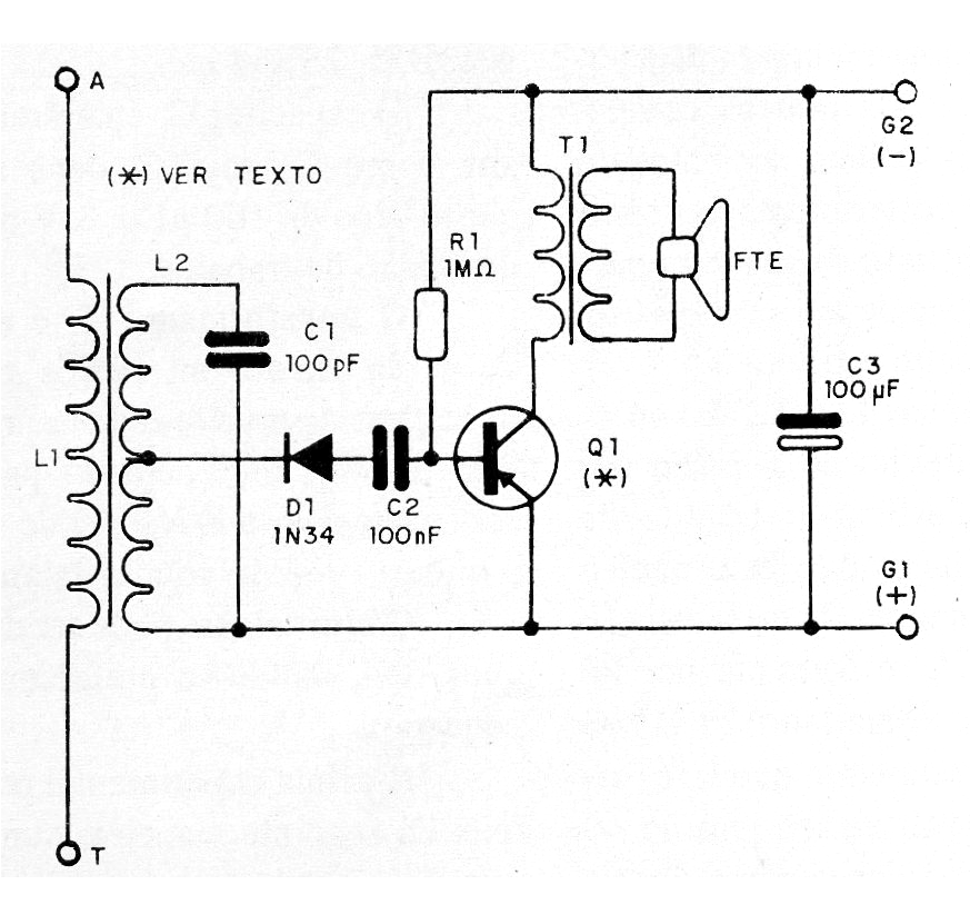 El transformador T1 es del tipo de salida encontrado en radios transistorizadas antiguas. Puede ser aprovechado de una radio antigua fuera de uso. El altavoz puede ser de cualquier tipo.