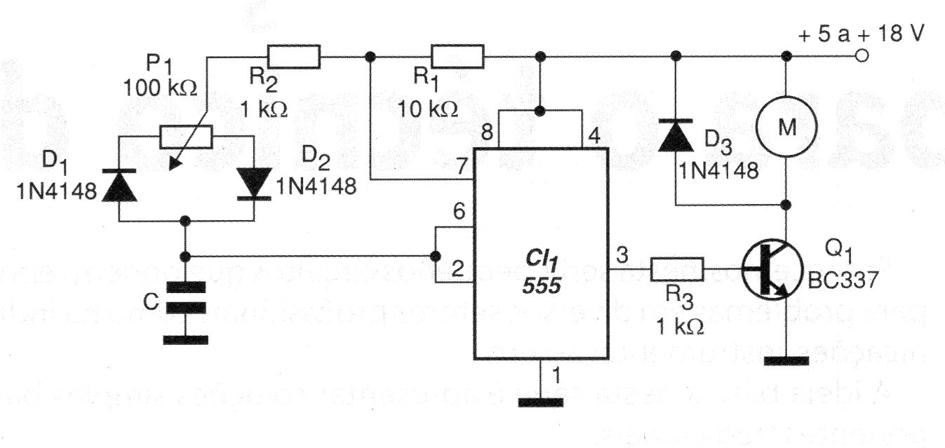 El capacitor C puede tener valores en el rango de 100 pF a 100 nF según las características del motor a ser controlado.