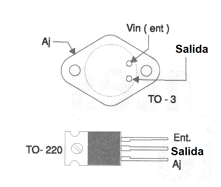 Los dos circuitos integrados están disponibles tanto en envolturas TO-220 (plástico) como TO-3 metálico, con los pinos mostradas en la figura 1.