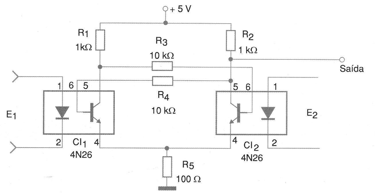 La alimentación se realiza con tensión de 5 V y la acción de realimentación que traba el circuito viene de los resistores R2 y R3. Estos componentes se deben cambiar si se utilizan otros acopladores para casar con sus características.