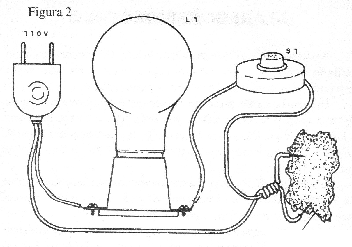 Para evitar el riesgo de cortocircuito con el experimento, utilizamos un limitador de corriente basado en una bombilla común de luz incandescente.